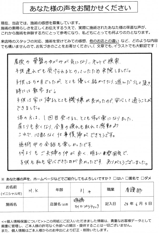 何よりもご夫婦の仲が良く、明るい雰囲気で子供も私も安心できたのが良かったです。