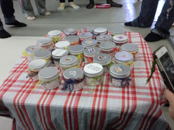 ハーバルソルトが出来たら、今度はその容器にキレイにラッピング。