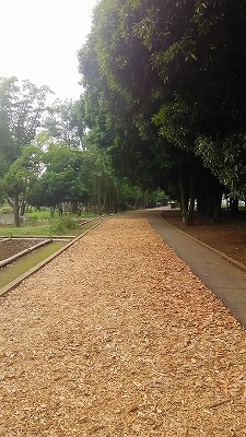 園内はウッドチップが敷き詰められていて、芝生の広場もあります。