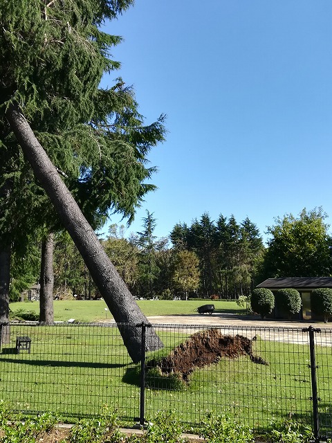 ワタシがいつも犬の散歩に行く公園も、たくさんの木が倒れたり折れたりしてましたね。