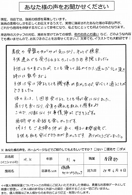 肩こりも良くなり、全身の疲れも取れて感動♪